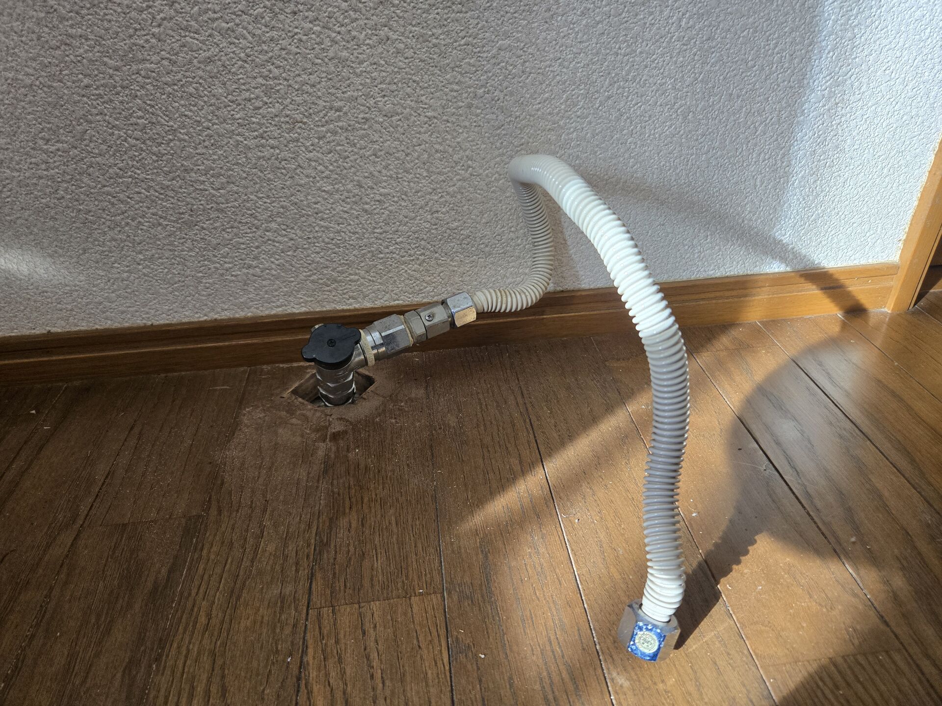 今までガスホース仕様だった(写真 上)のが新機種はガスコード式になっているので、ガス栓をガスコンセント(写真 下)へ変更です。